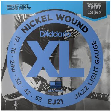 EJ21 D'Addario Jazz Light Gauge Bright Round Wound Electric Guitar Strings